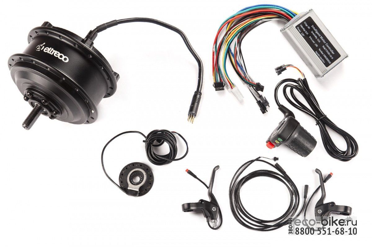 Данный комплект электрификации разработан на базе мотор-колеса Eltreco 36V 350W под дисковый тормоз, смонтированного в двойной 26-дюймовый заспицованный обод заднего колеса. Комплект поставляется в собранном виде, готовый к эксплуатации после установки на ваш велосипед.